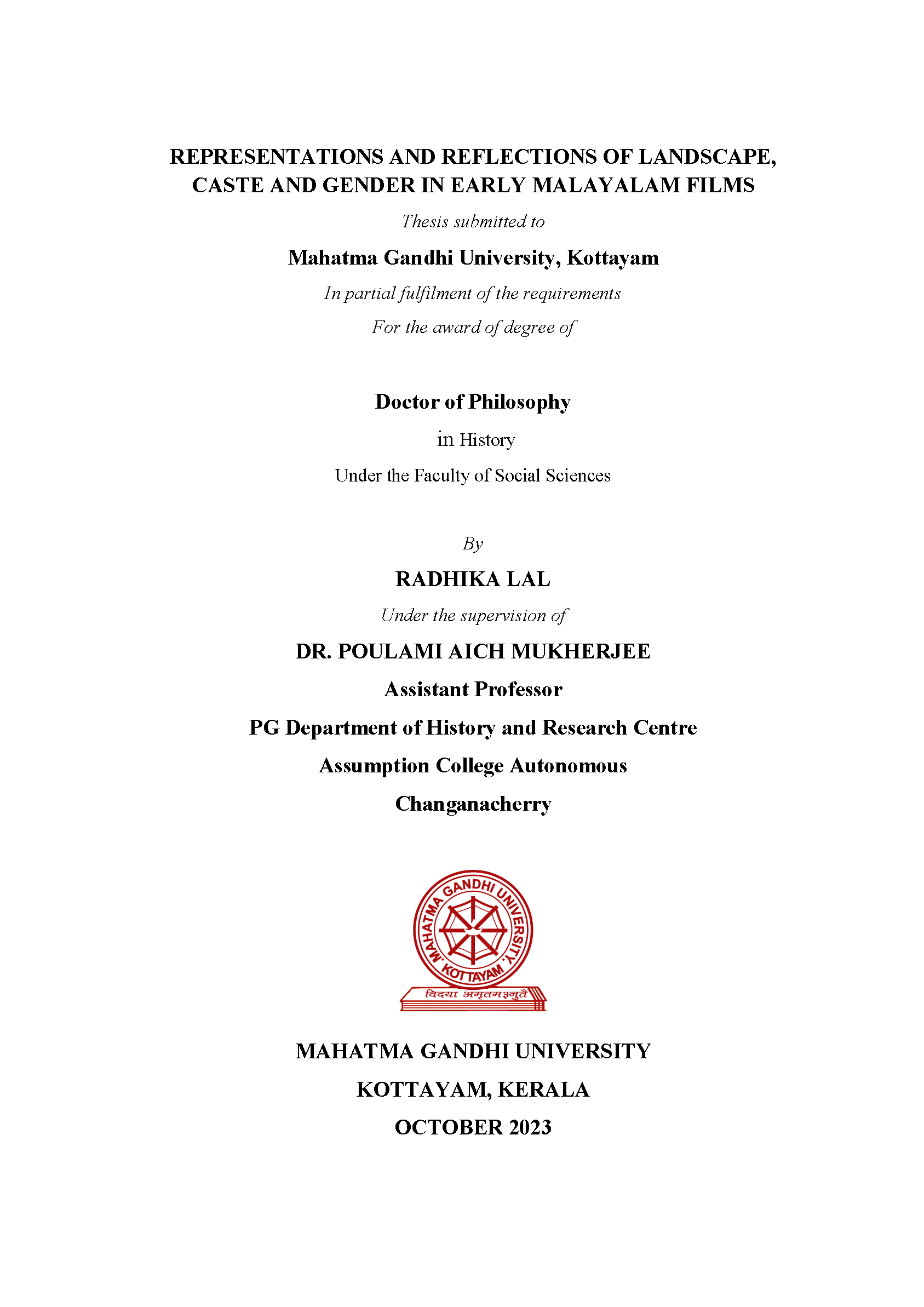 Representations and reflections of landscape, caste and gender in early malayalam films