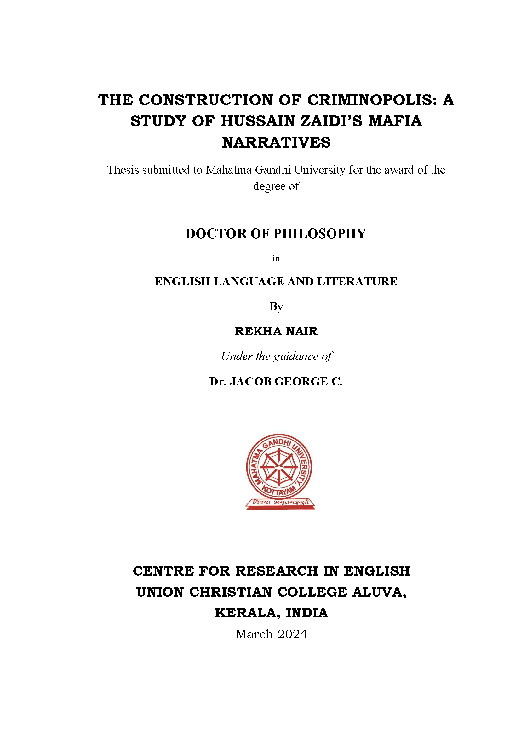 Research Supervisor, Centre for research in English, Union Christian College,Aluva |