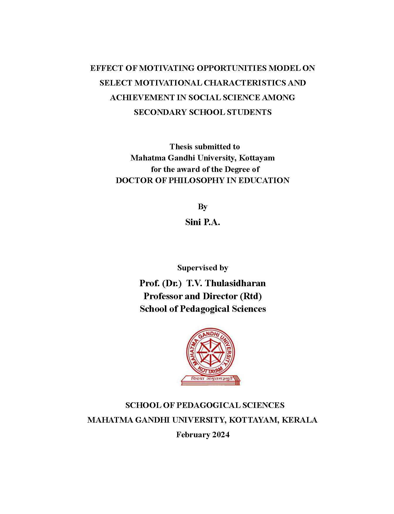 Rtd Professor, School of Pedagogical Sciences, Mahatma Gandhi University, Kottayam. |