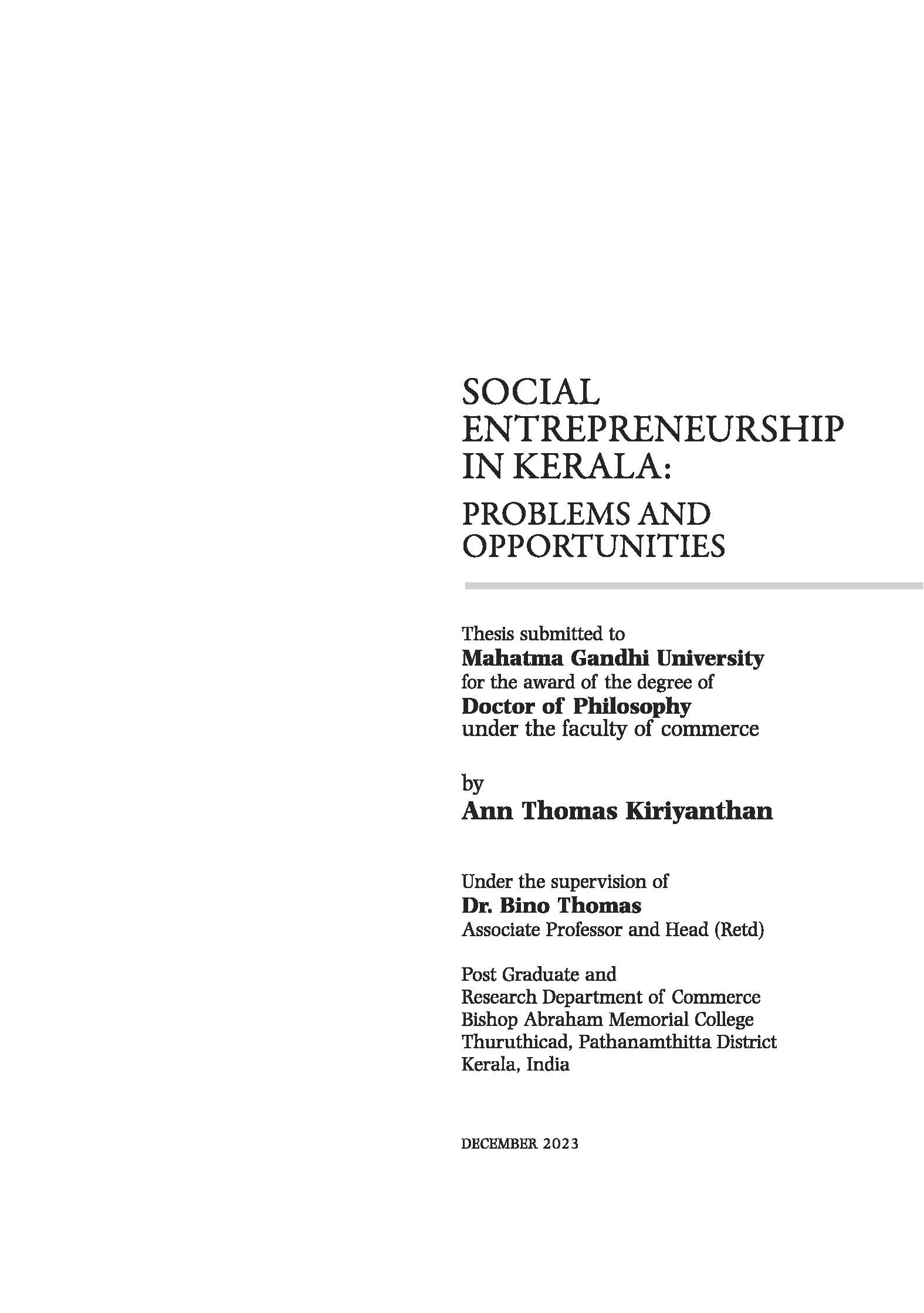 Research Guide, Mahatma Gandhi University, Former Head of the Department, Department of Commerce & Centre for Research, BAM College, Thuruthicad, Pathanamthitta 689 597 |