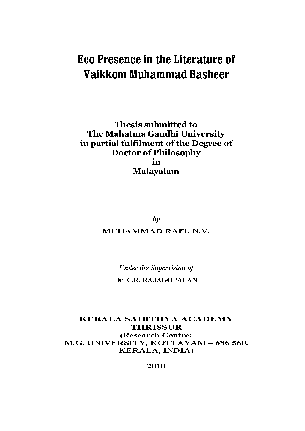 3.1 ബഷീര് കഥകളിലെ പ്രകൃതി
