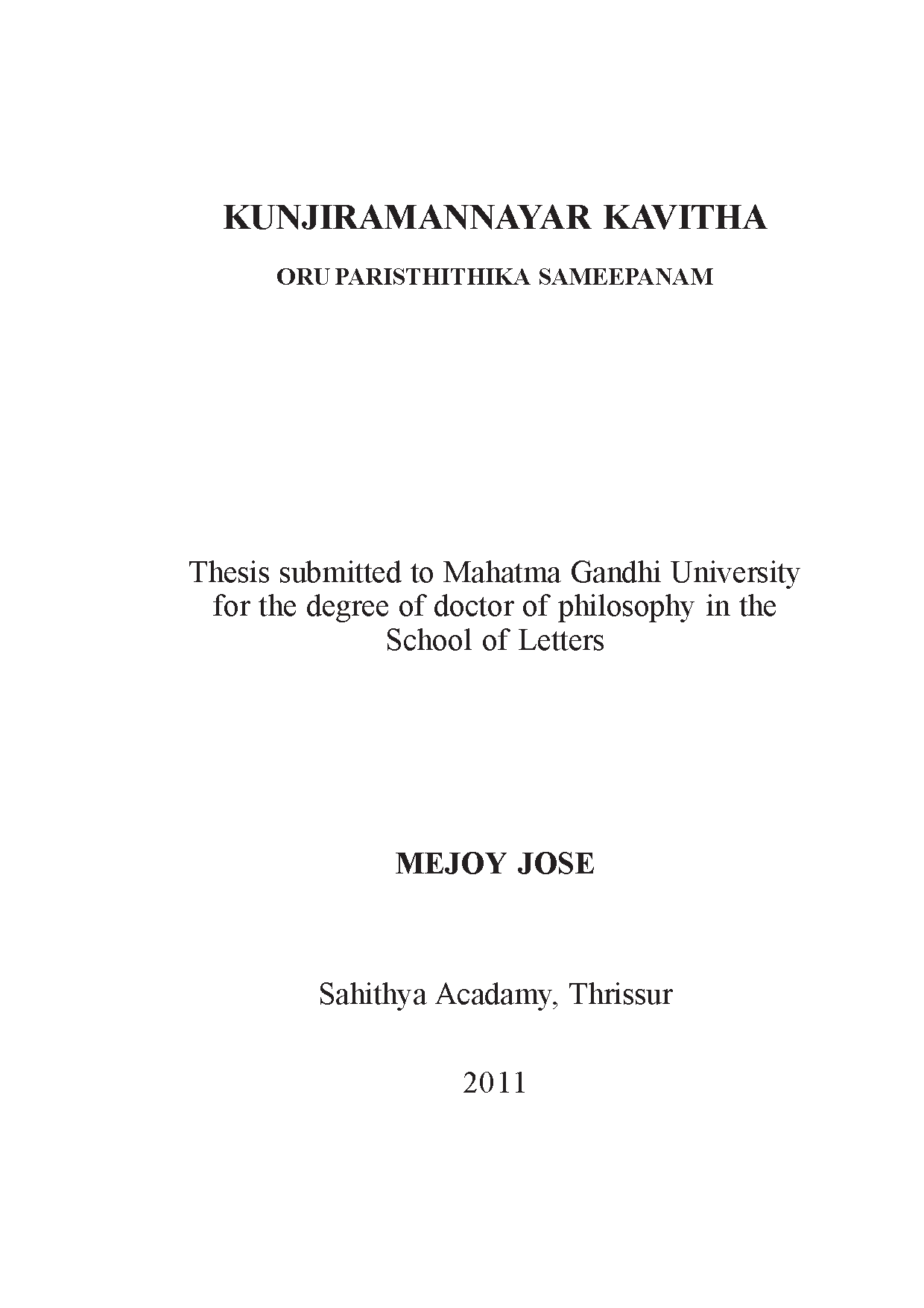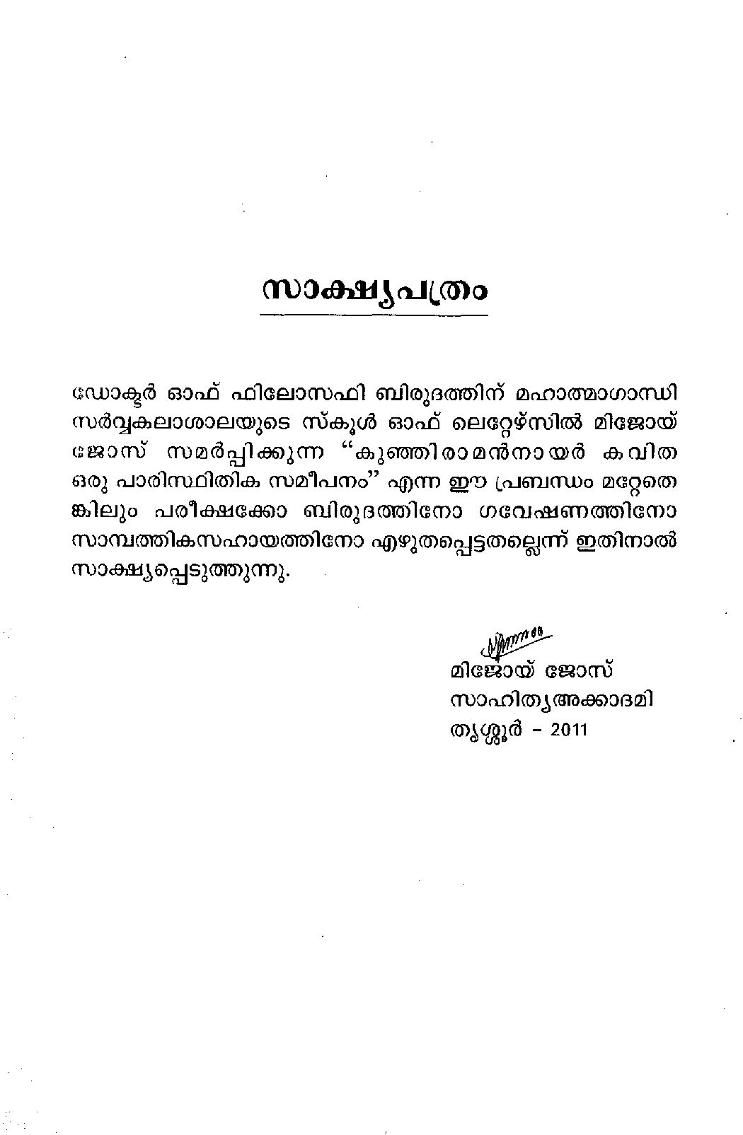 5. പാരിസ്ഥിതിക സമീപനം കുഞ്ഞിരാമന് നായര്ക്കവിതയില്