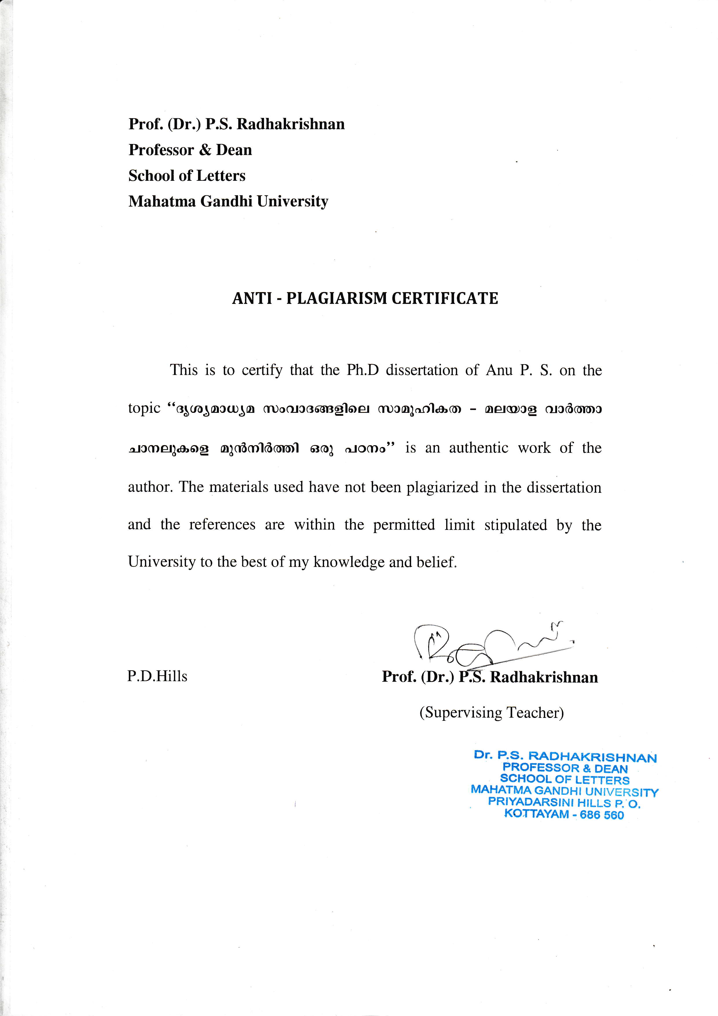 പ്ലേജെറിസം സർട്ടിഫിക്കറ്റ്