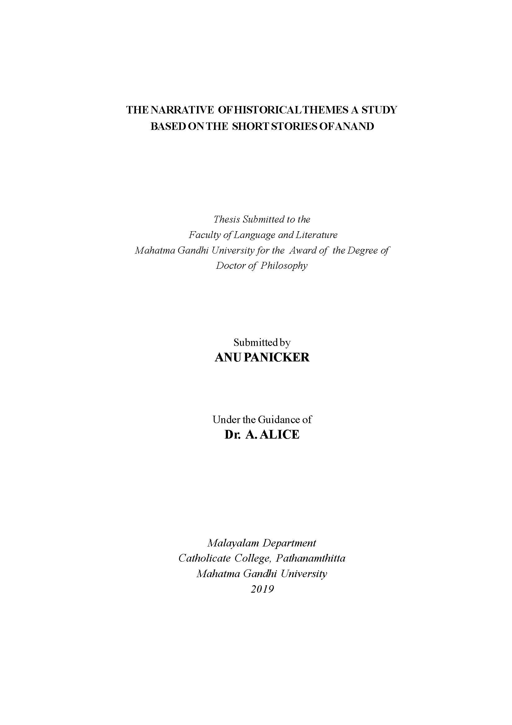 3. ചരിത്രത്തിന്റെ രേഖീയമായ വായന ആനന്ദിൻറെ കഥകളിൽ