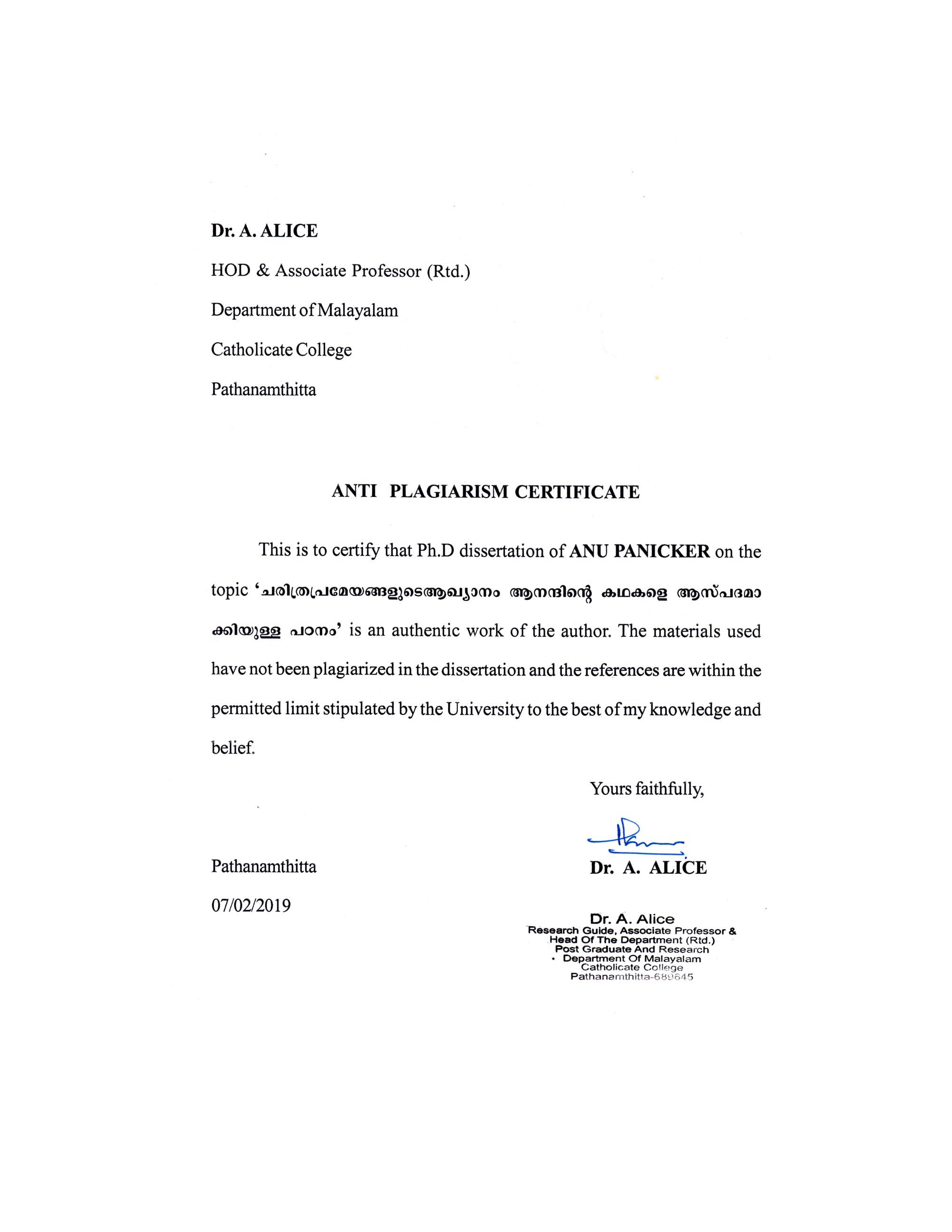 പ്ലേജിയാറിസം സർട്ടിഫിക്കറ്റ്