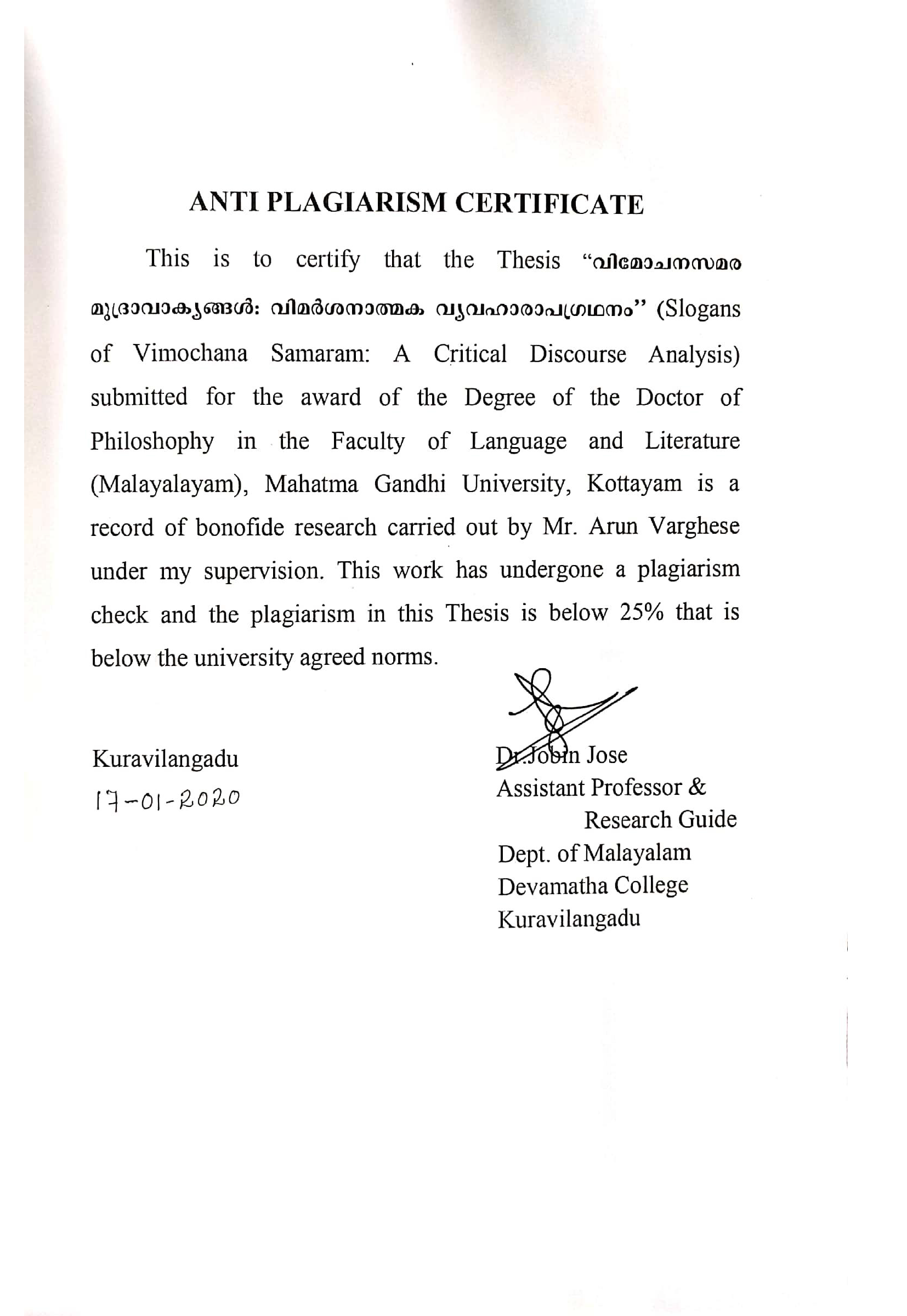 ആൻറി പ്ലേഗിയറിസം സർട്ടിഫിക്കറ്റ്