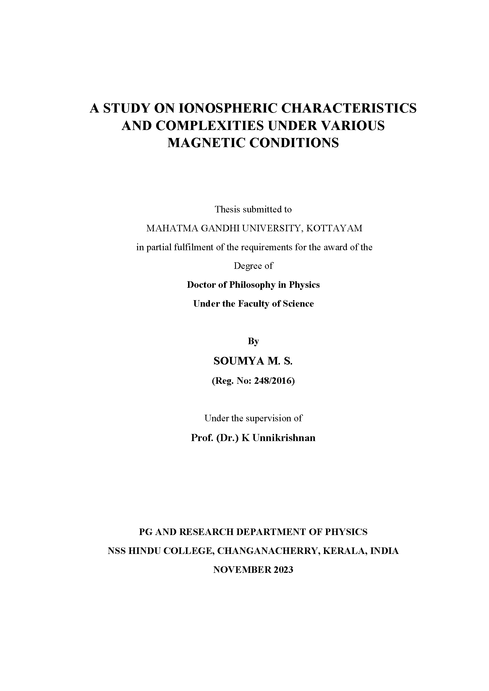 A study on ionospheric characteristics and complexities under various magnetic conditions Space Weather Earth’s Magnetosphere Geomagnetic Storms Geomagnetic Indices