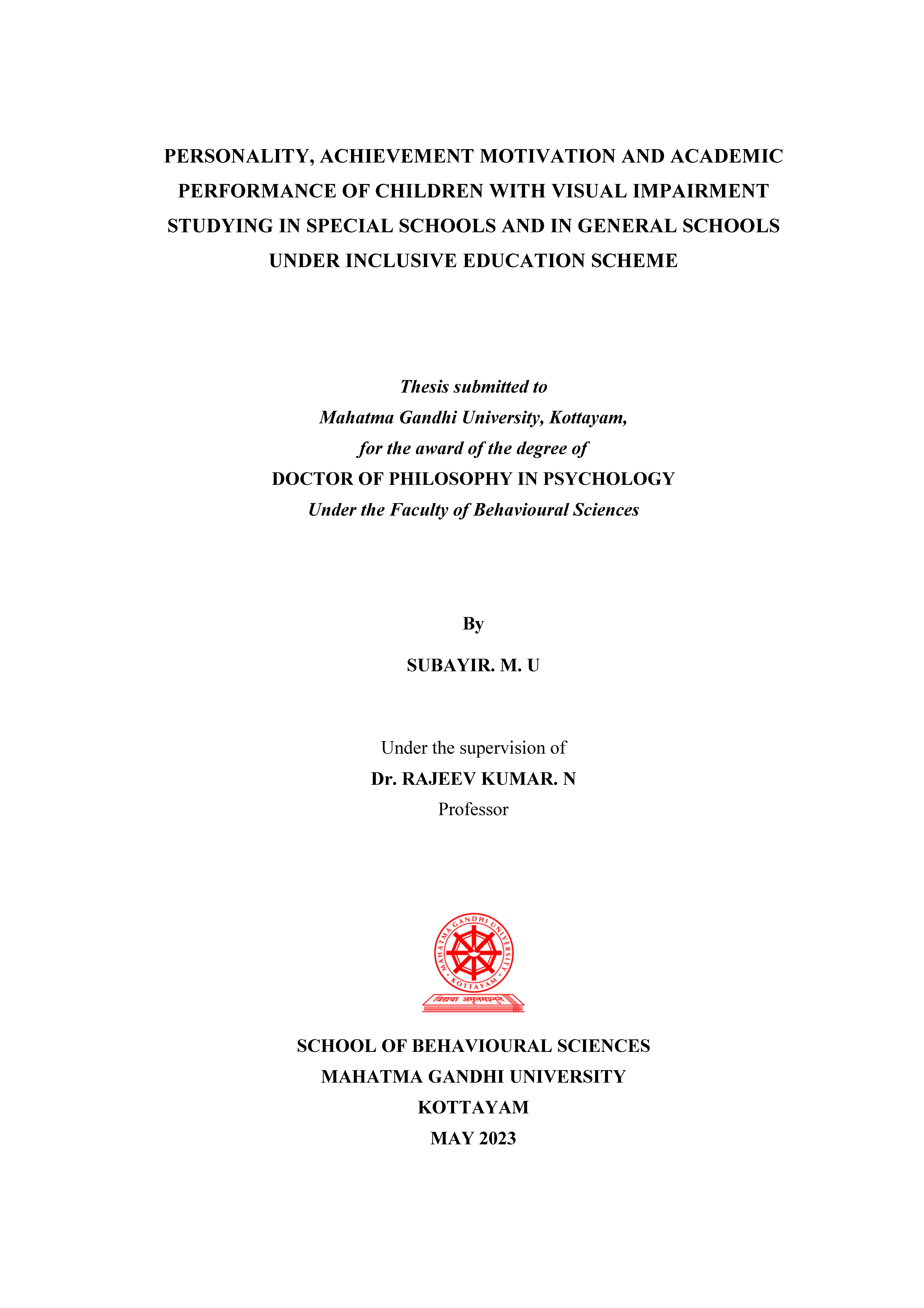 School of Behavioural Sciences, School of Behavioural Sciences, Mahatma Gandhi University, Kottayam |