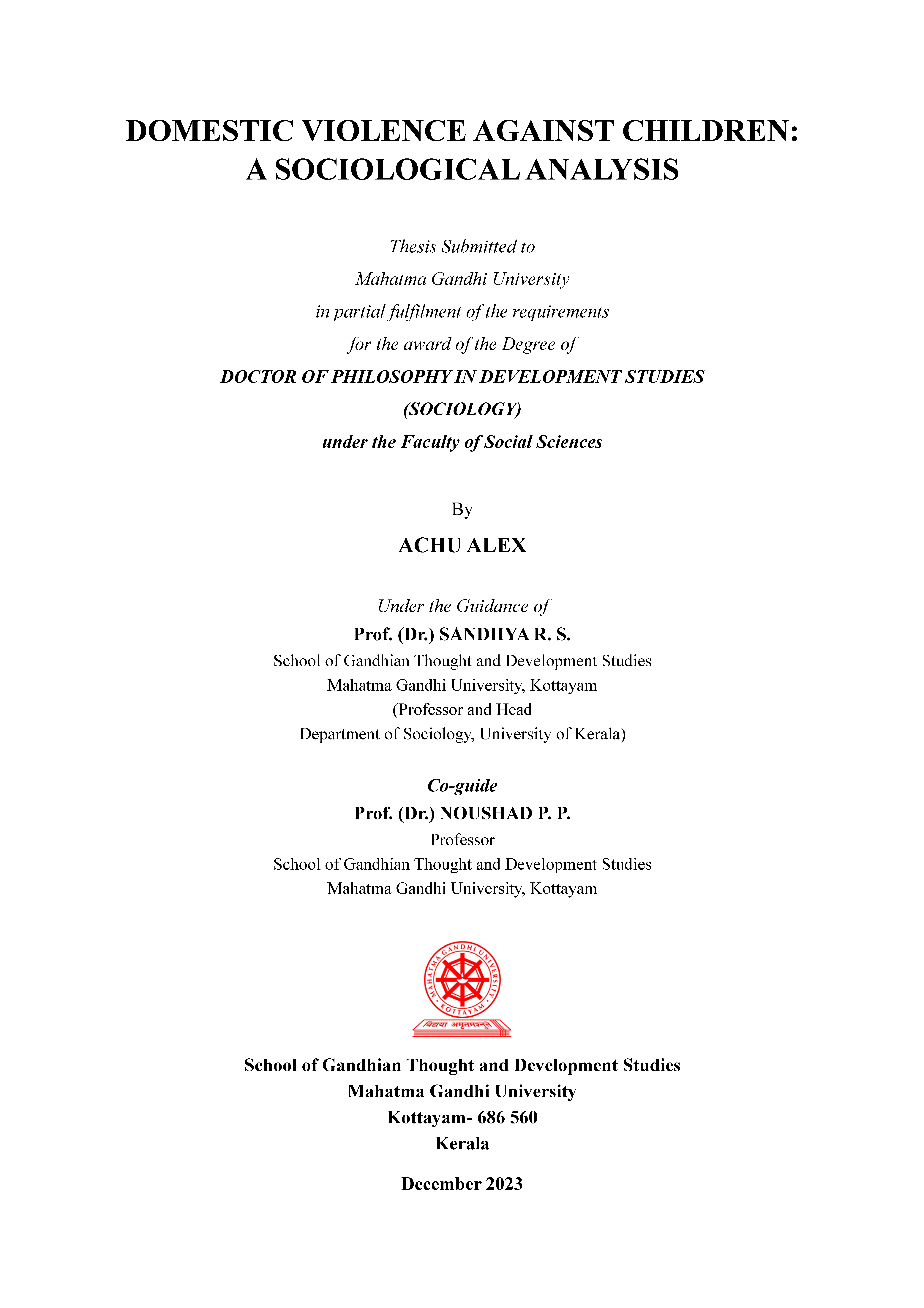 Domestic violence against children: A sociological analysis