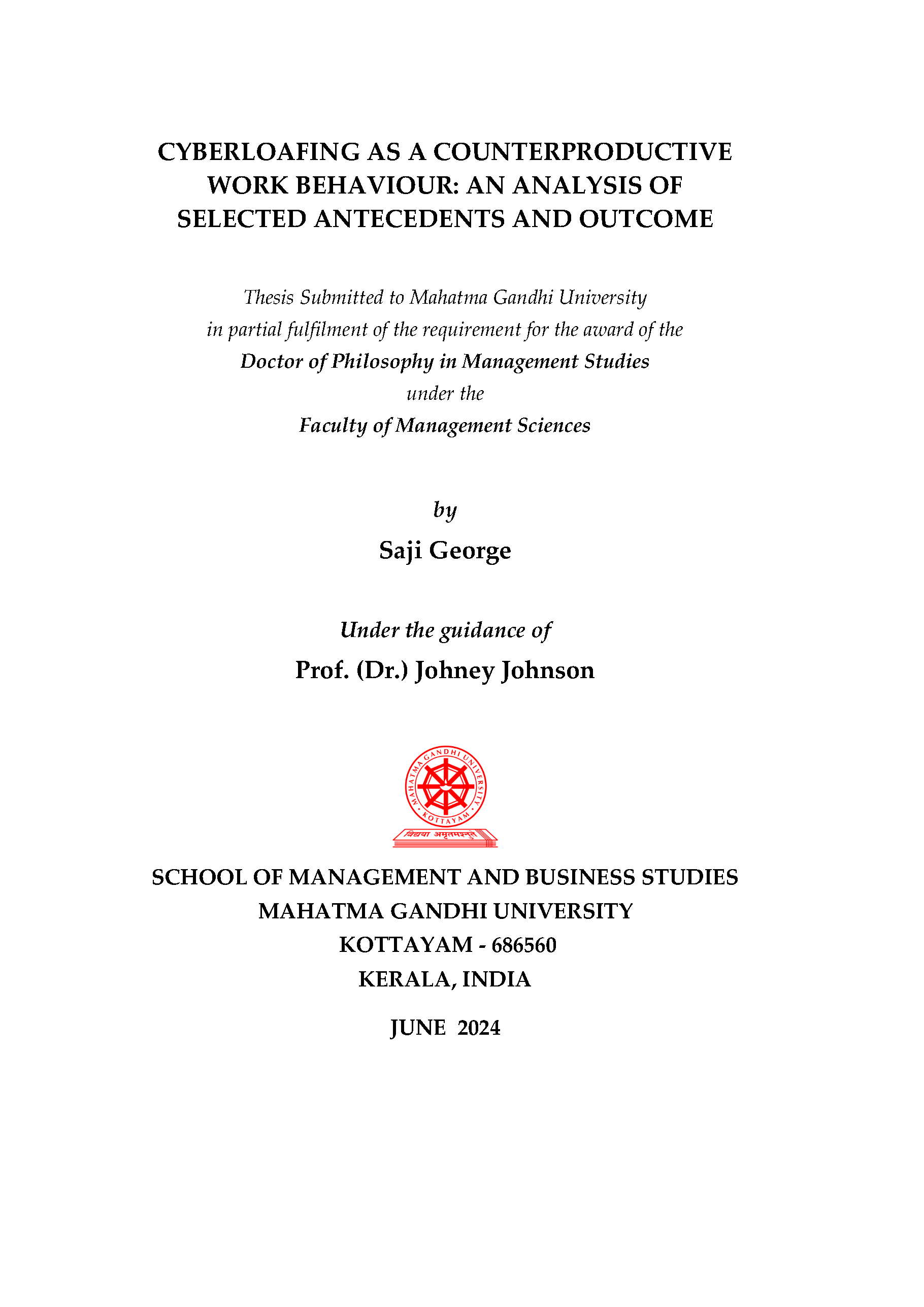 Professor, School of Management and Business Studies, Mahatma Gandhi University, Kottayam 686 560 |