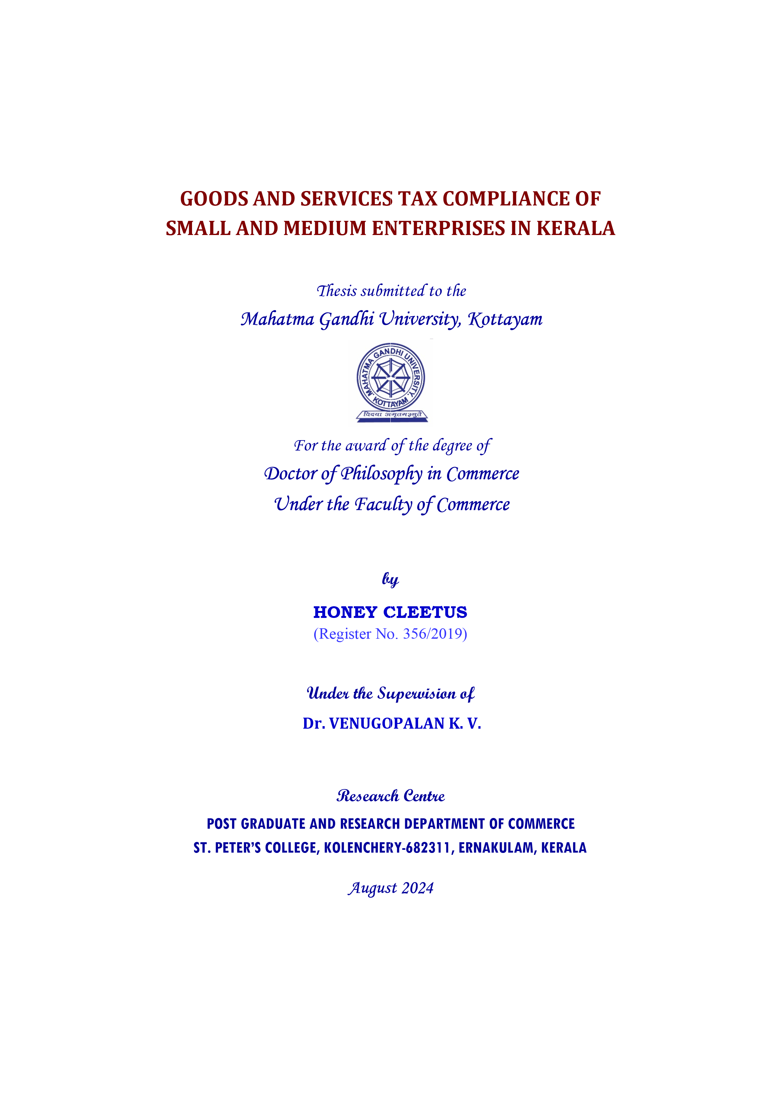 Associate Professor(HOD & Research Guide) PG & Research Department of Commerce, St Peter's College, Kolenchery - 682 311 |