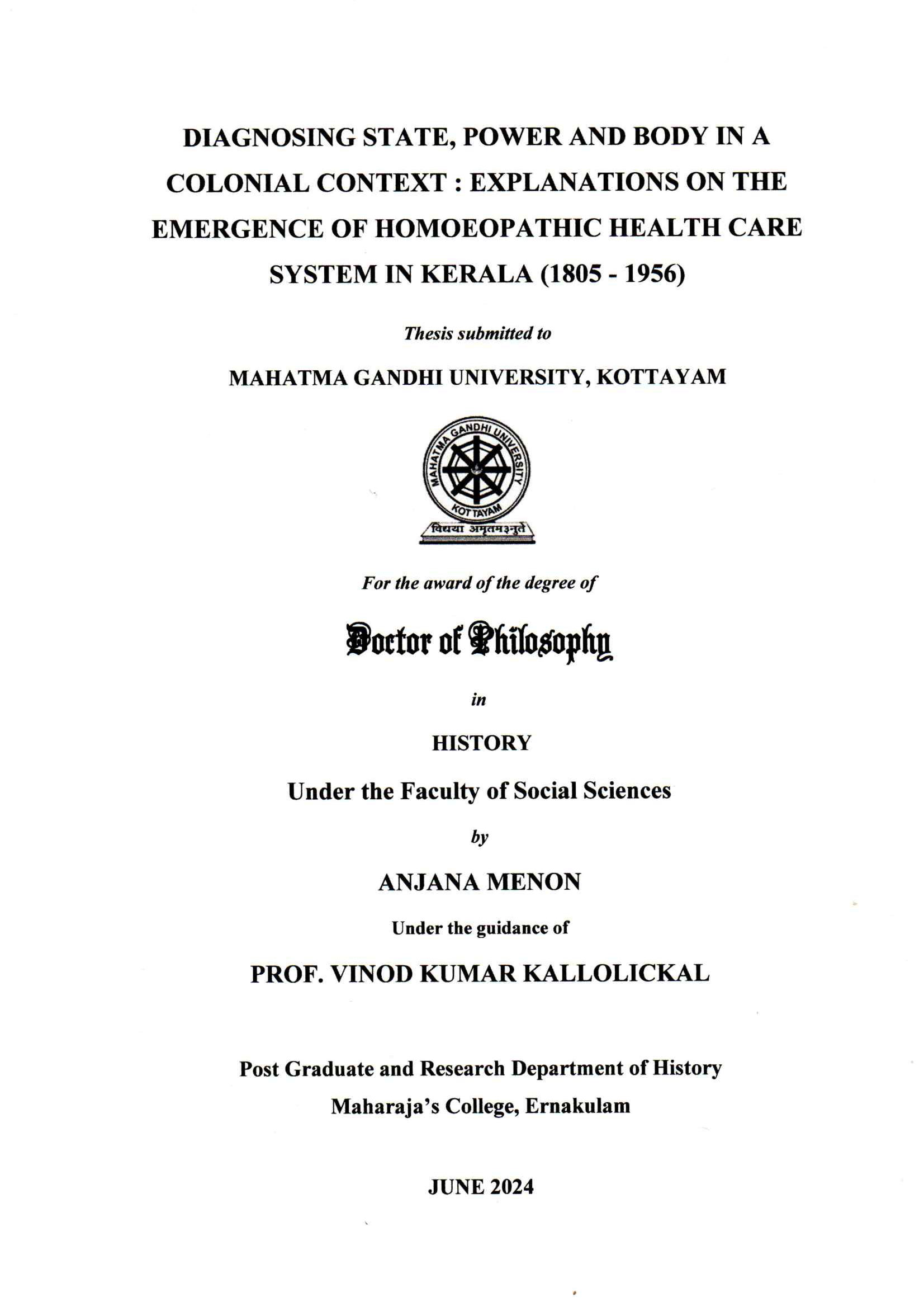 Diagnosing state, power and body in a colonial context: explanations on the emergence of homoeopathic health care system in Kerala (1805-1956)