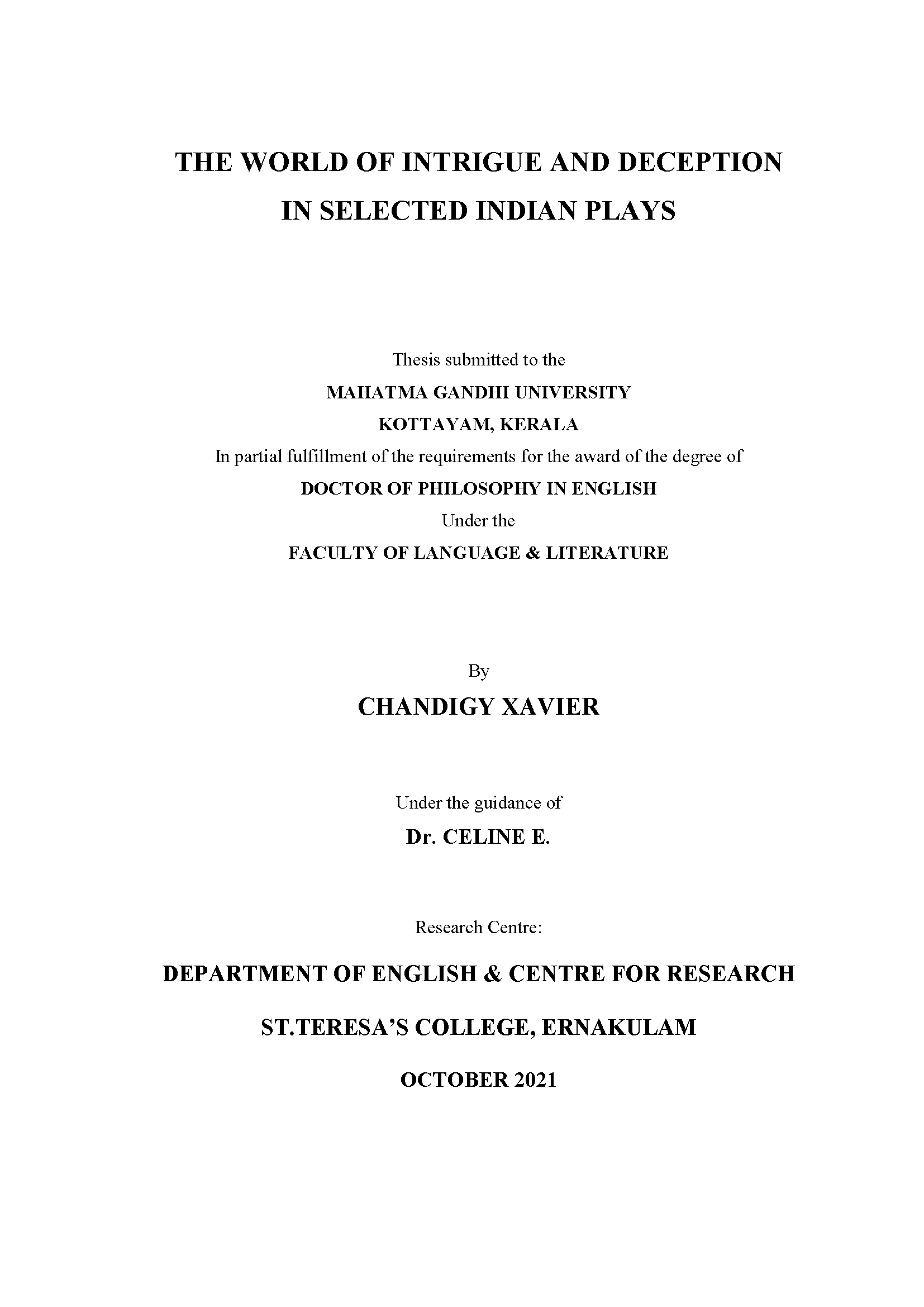 Research Guide, Department of English, St Teresa's College (autonomous), Ernakulam Kochi 682 011 |