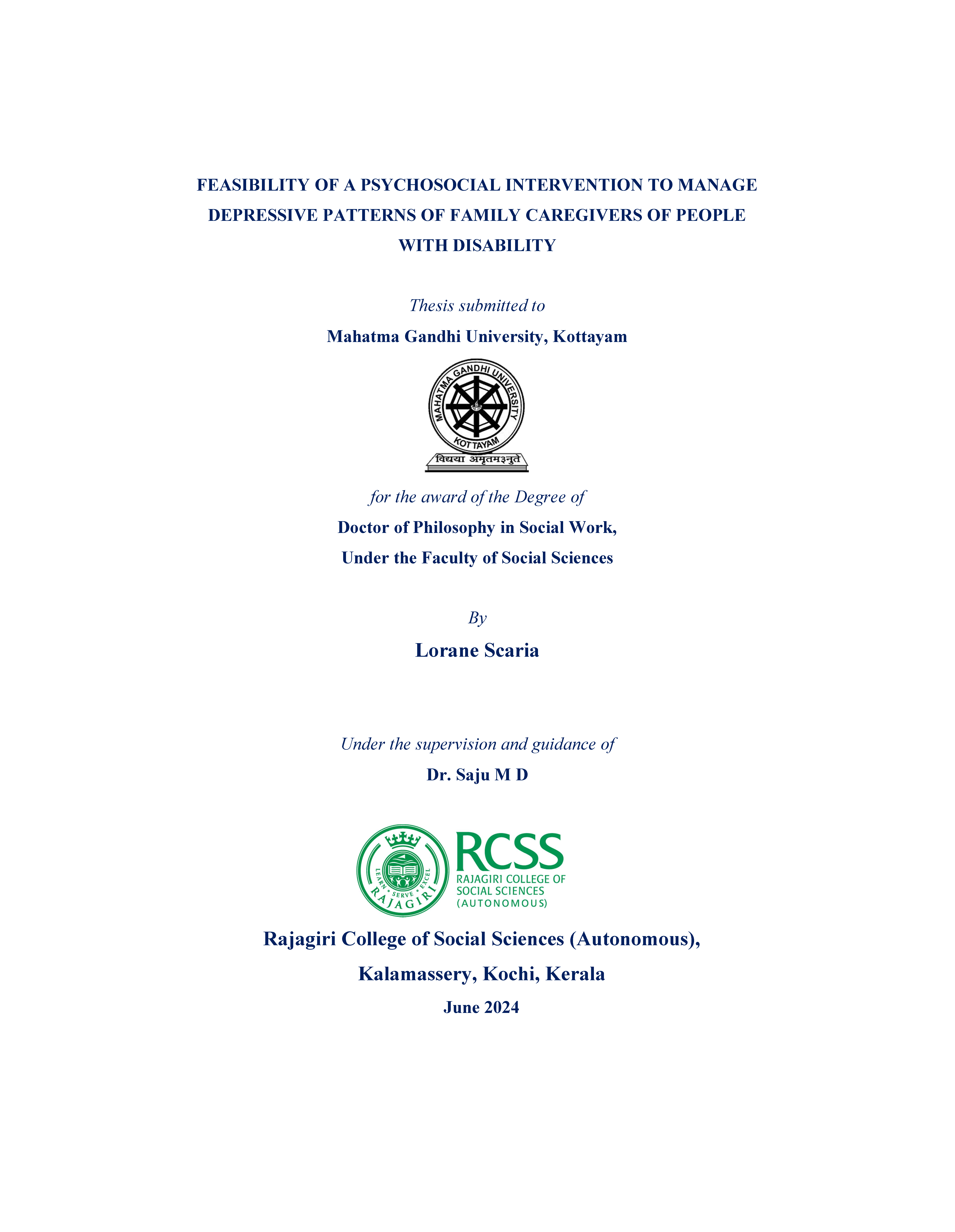 Associate Professor & Research supervisor, Department of Social Work, Rajagiri College of Social Sciences (Autonomous) Rajagiri P O, Kalamassery |