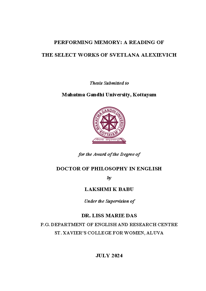 Performing memory: a reading of the select works of Svetlana Alexievich
