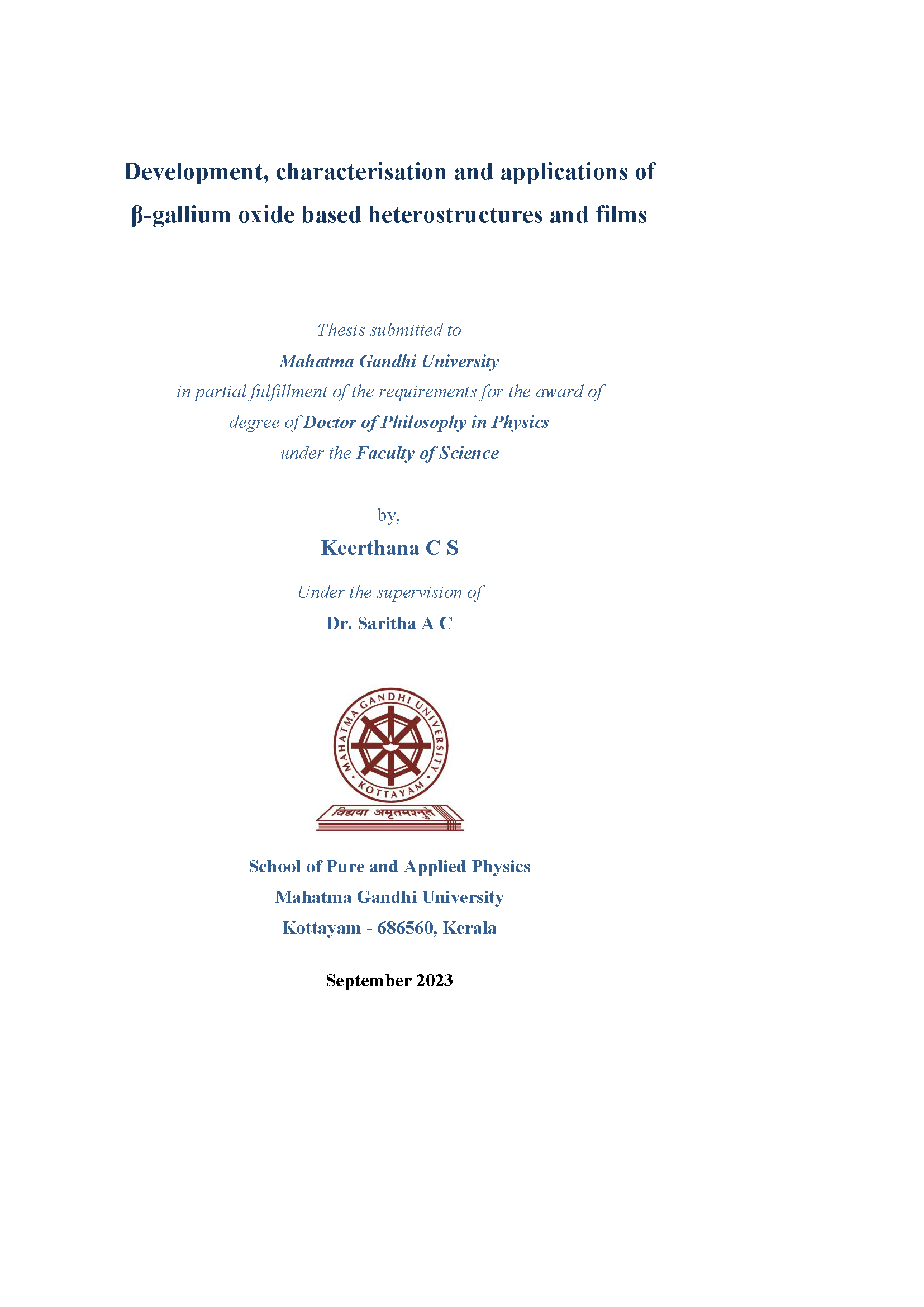 Guide Address Professor, School of Pure and Applied Physics, Mahatma Gandhi University, Kottayam.