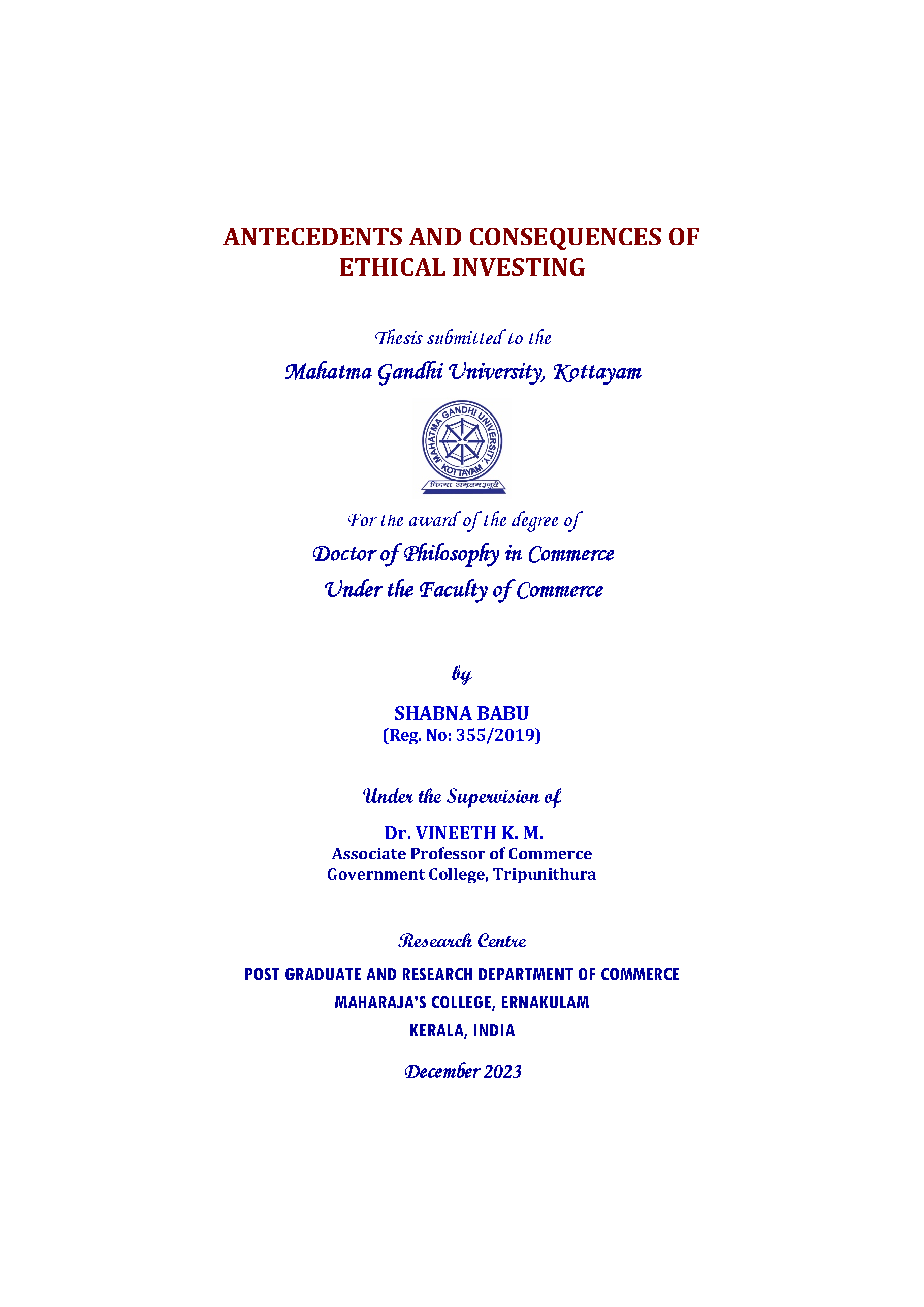 Antecedents and consequences of ethical investing Ethical Investing SDG