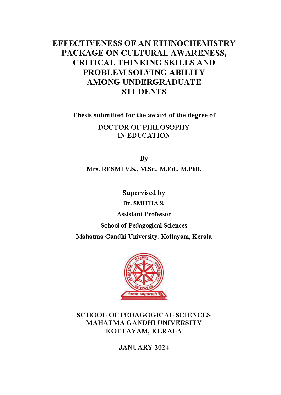 Guide Address Assistant Professor, School of Pedagogical Sciences, Mahatma Gandhi University, Kottayam.