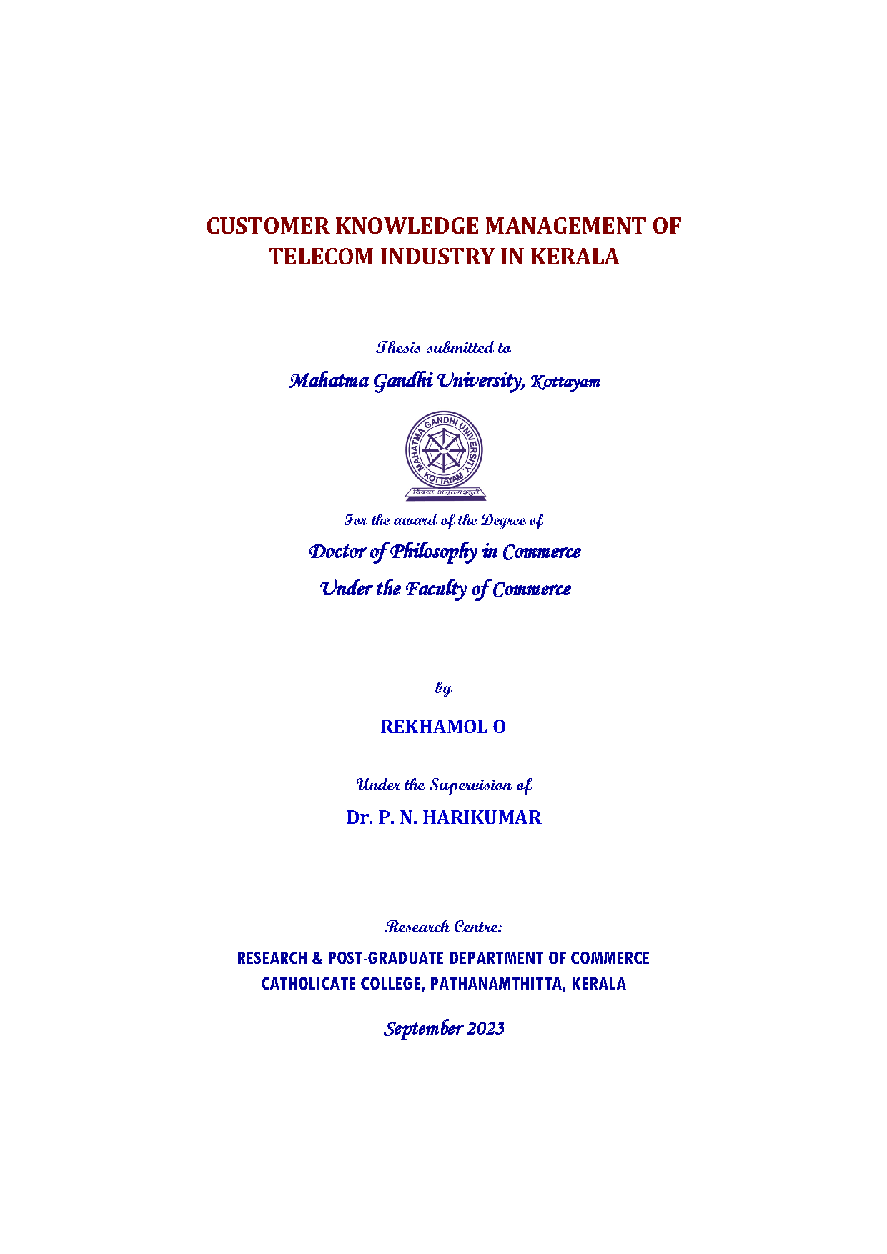 Keywords Customer knowledge management of Telecom industry in Kerala