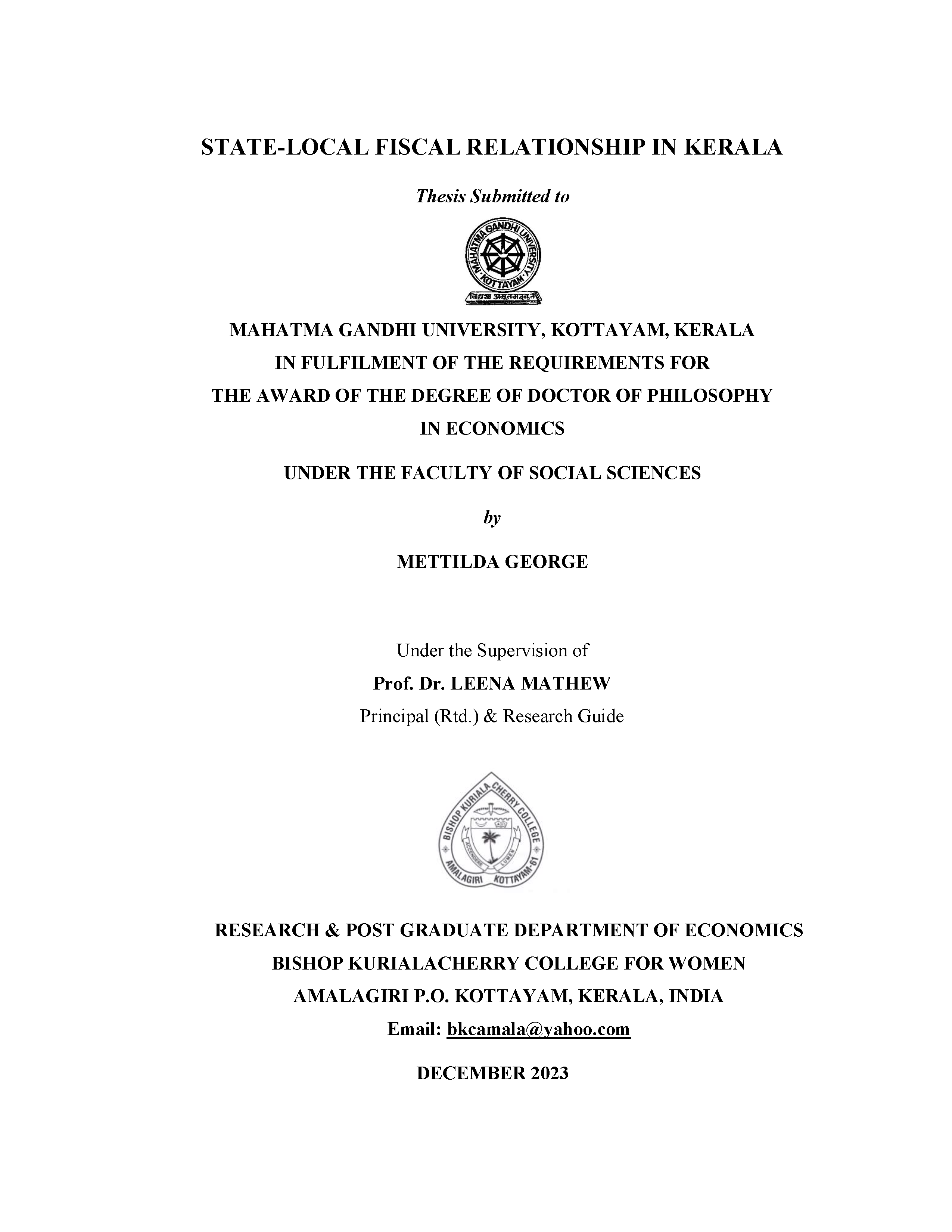 Principal & Research Guide, Bishop Kurialacherry College for Women, Amalagiri, Kottayam-686561 |