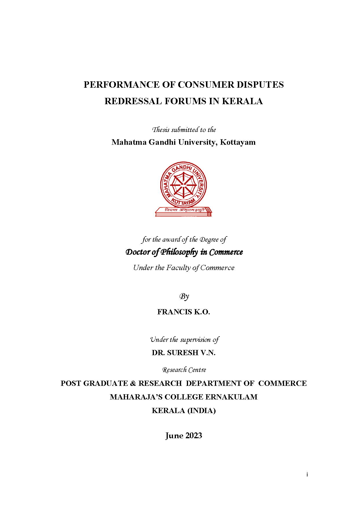 Performance of consumer disputes redressal forums in Kerala Consumer Disputes Redressal Forums
