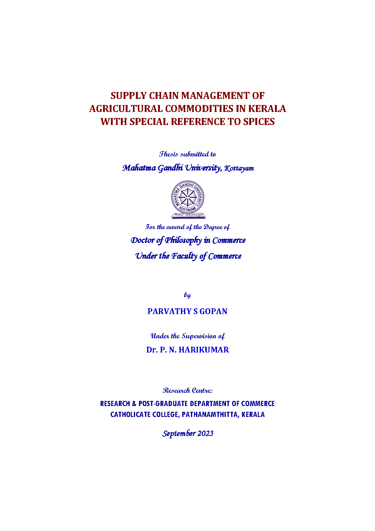 Keywords Supply chain management of agricultural commodities in Kerala with special reference to spices