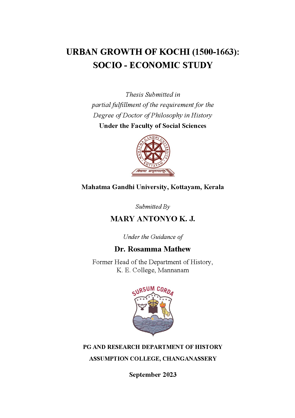 Urban growth of Kochi (1500-1663): socio - economic study Urban growth of Kochi Urbanization Emergence of the Port Town Native Cities Colonial port Cities Port City and the Urban Morphology Theoretical Framework Area and Period of Study Purpose and Objective of the study Statement of the Problem Research Methodology Hypothesis Review of Literature Survey of Sources Proposed Chapterisation Rise of Kochi as the Capital of the Kingdom of Kochi Foreign Travellers’ Accounts of Kochi kochi under the Portugese Attempts for the Discovery of Direct Sea-Route to India Preparations for the Voyage to India Explorative Voyage of Vasco Da Gama Vasco Da Gama’s First Meeting with the Zamorin Arrival of Álvares Cabral to India Arrival of Cabral at Kochi Administration in the Portuguese Factory at Kochi Origin of the Latin Christian Community