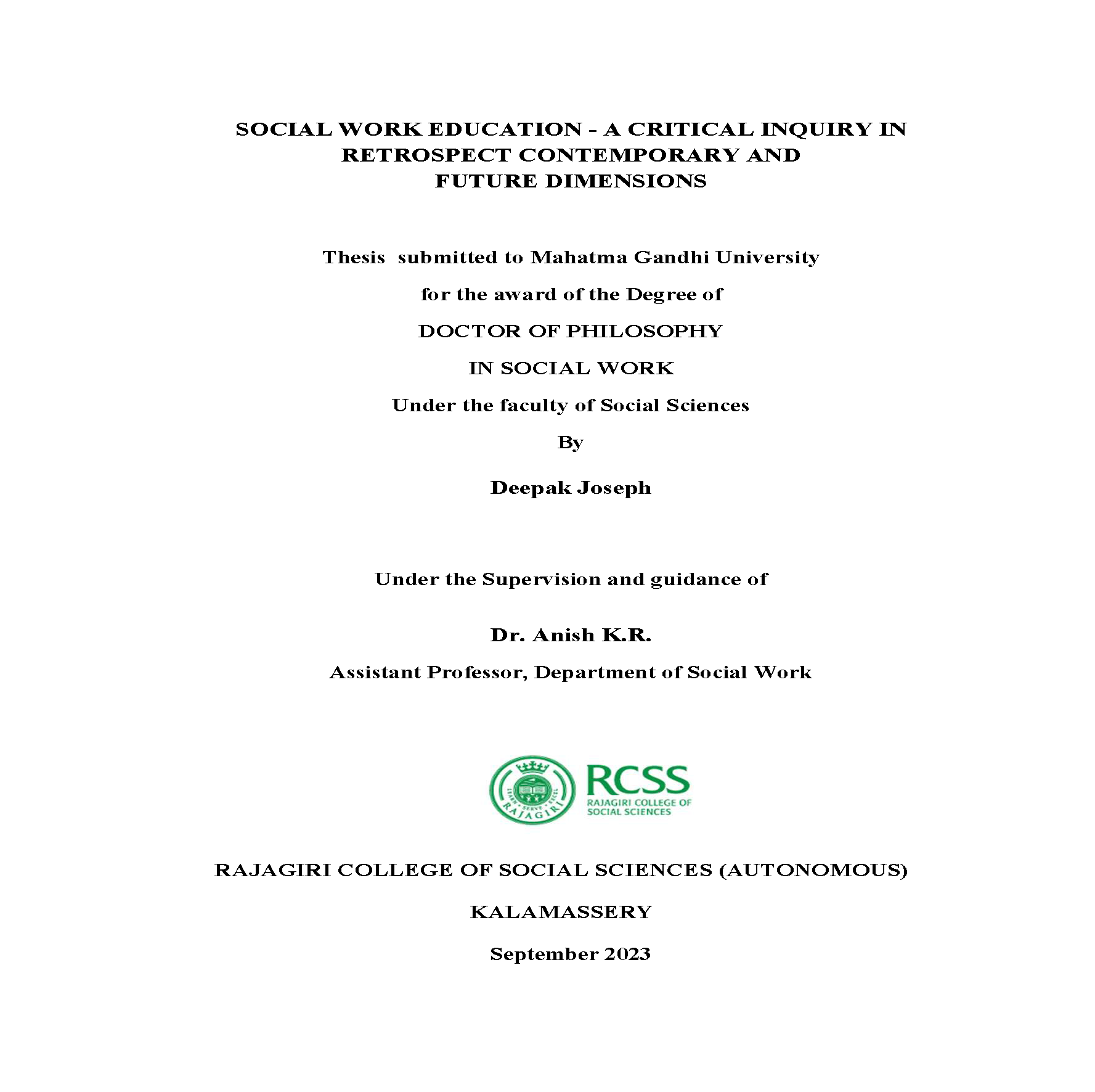 Keywords Social work education - a critical inquiry in retrospect contemporary and future dimensions