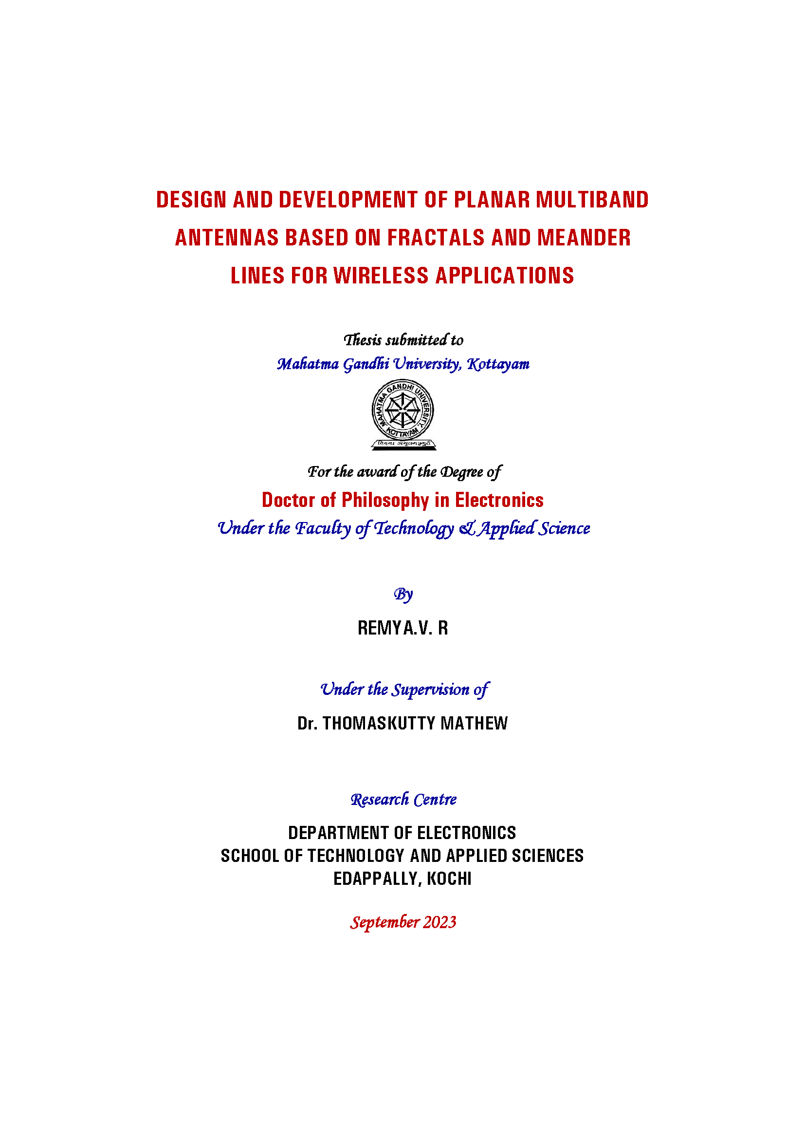 Department of Electronics, School of Technology and Applied Sciences, Edappally, Ernakulam |