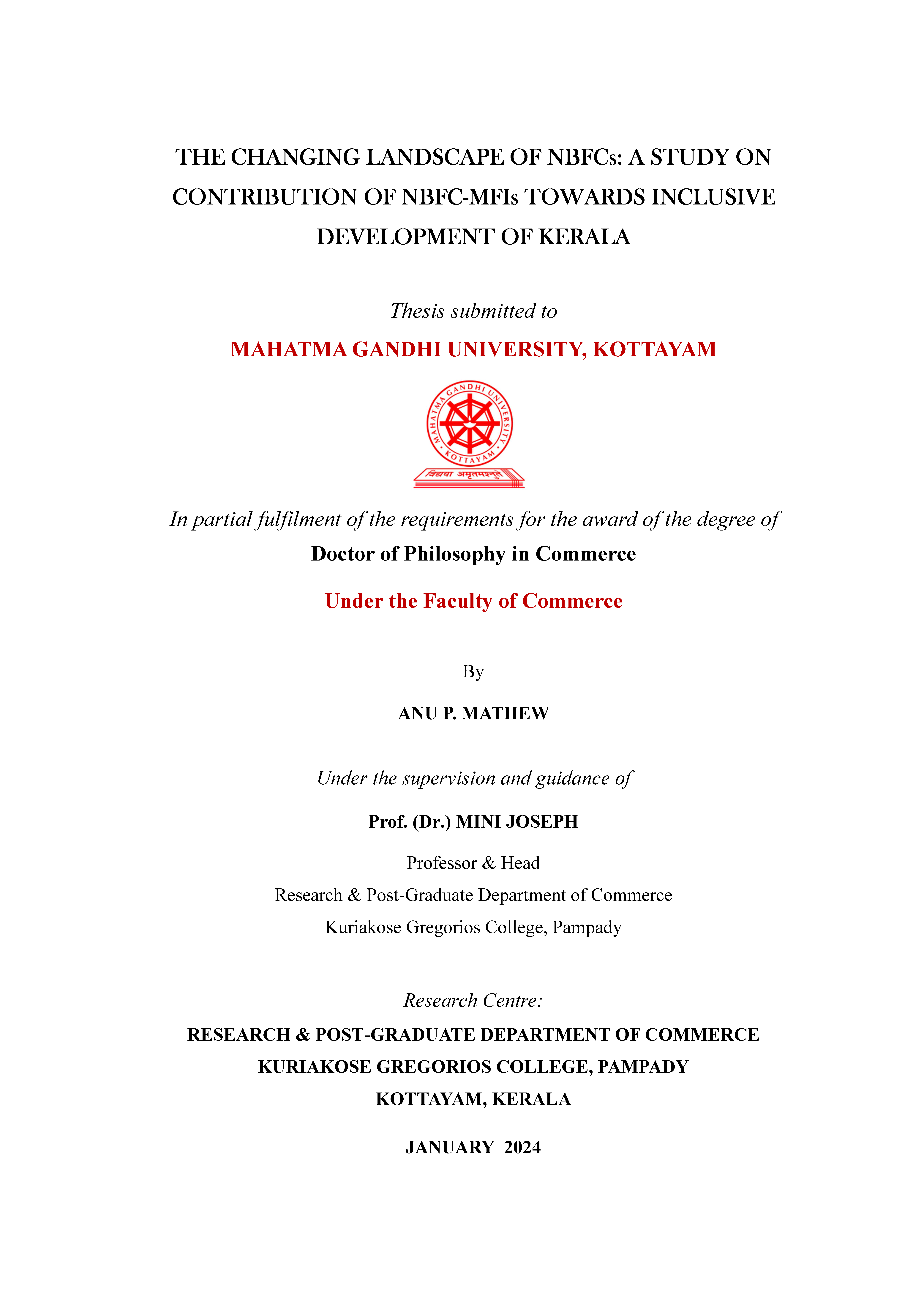 The chanaging landscape of NBFCs: A study on contribution of NBFC-MFIs toward inclusive development of Kerala