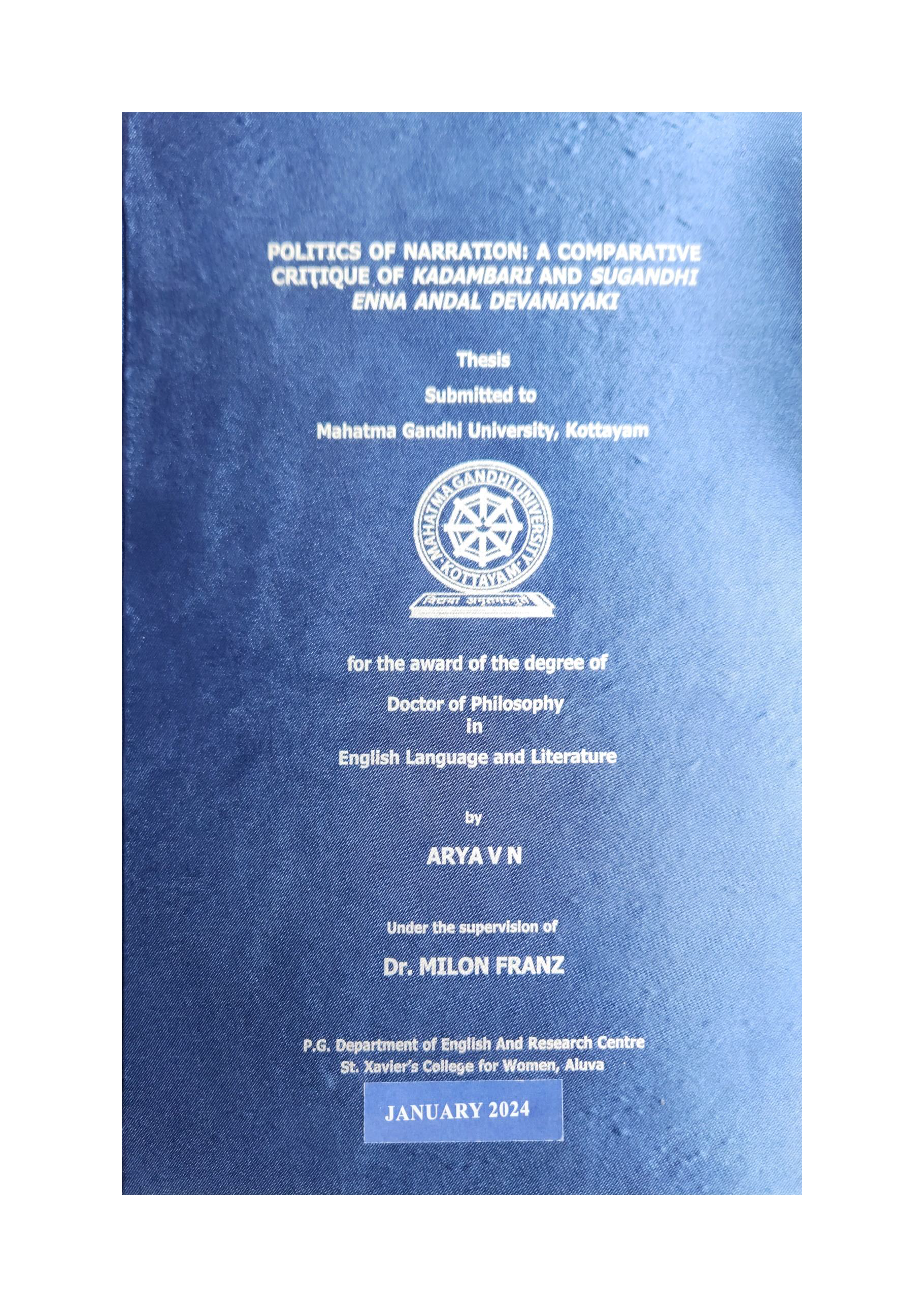 Centre of Research Department of English, St. Xavier's college for women, Aluva