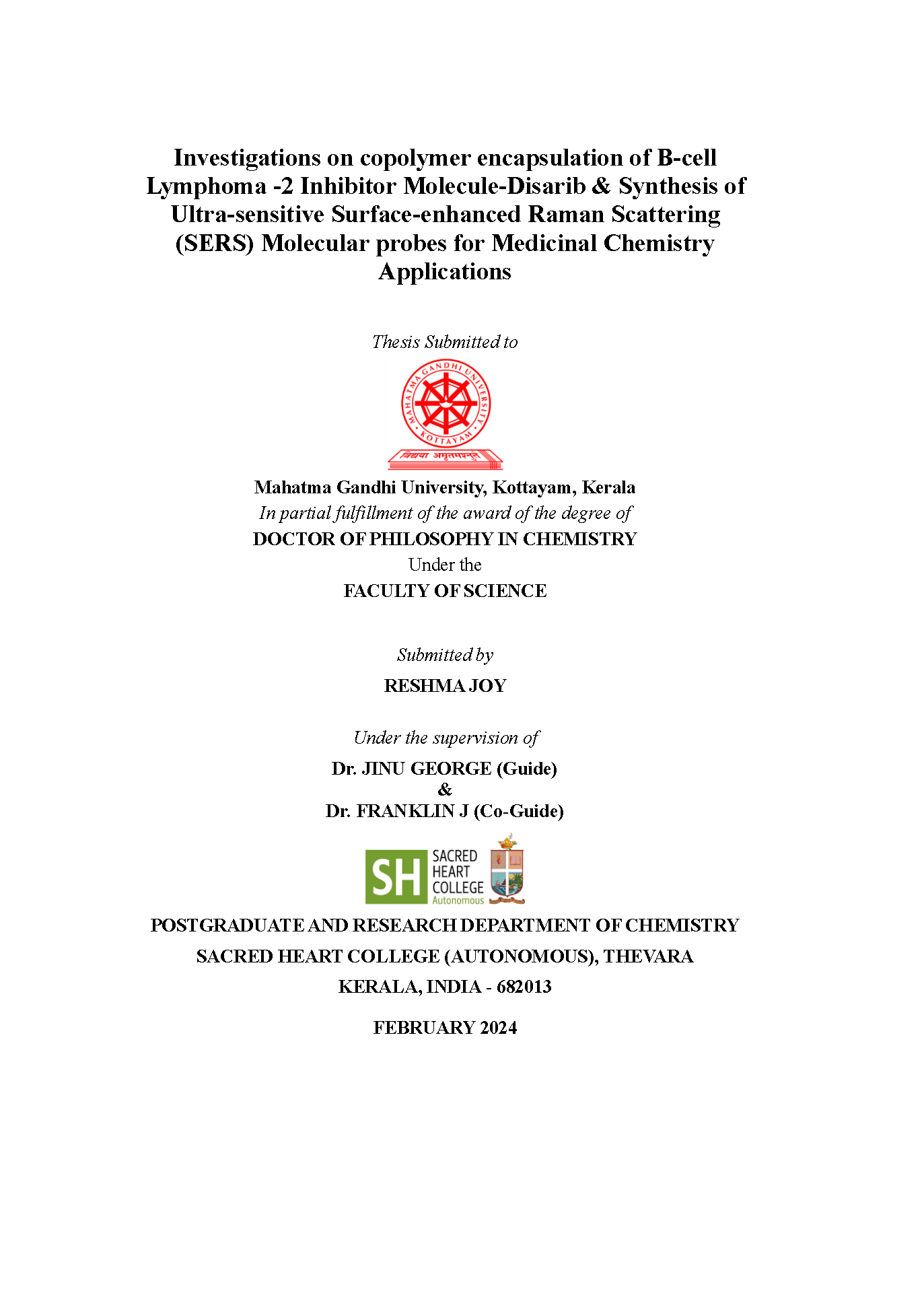 Investigations on copolymer encapsulation of B-cell Lymphoma-2 Inhibitor Molecule-Disarib & Synthesis of Ultra-sensitive Surface-enhanced Raman Scattering (SERS) Molecular probes for Medicinal Chemistry Applications
