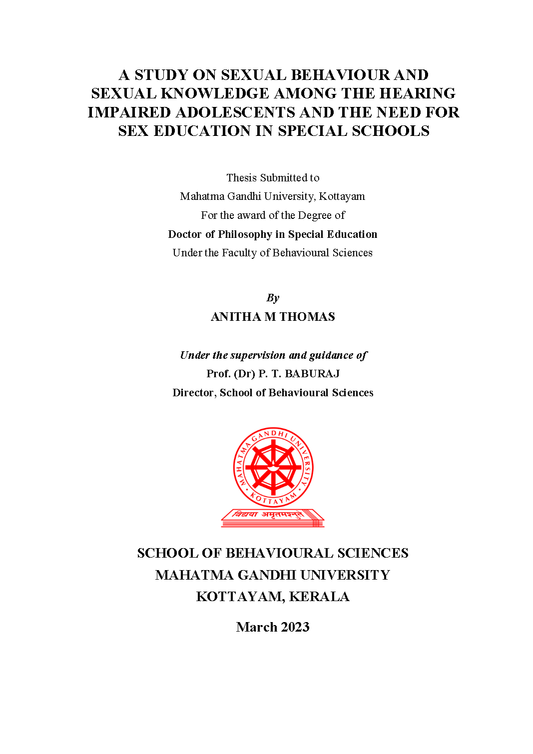 Keywords A study on sexual behaviour and sexual knowledge among the hearing impaired adolescents and the need for sex education in special schools