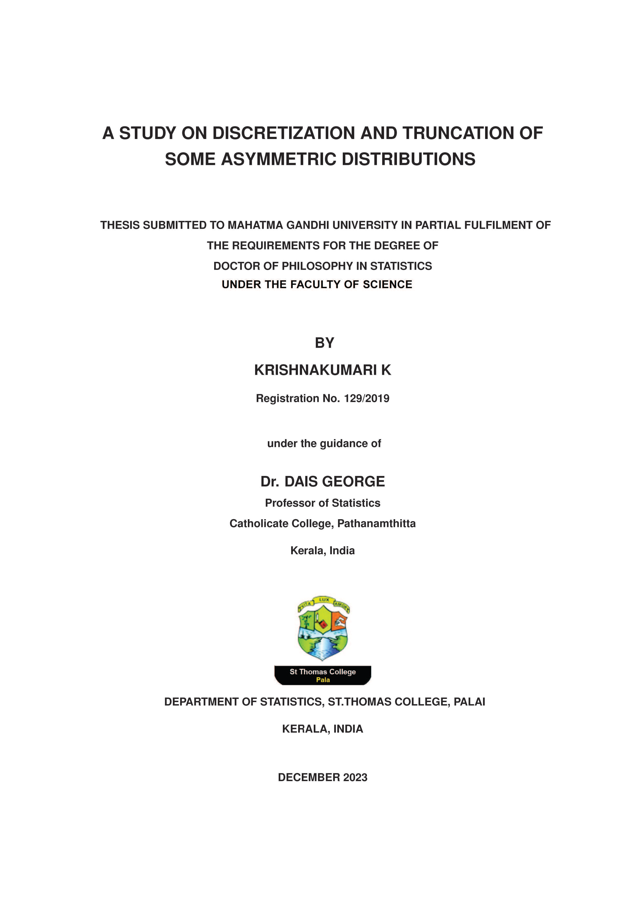 Professor in Statistics (Research Supervisor), Catholicate College, Pathanamthitta. |